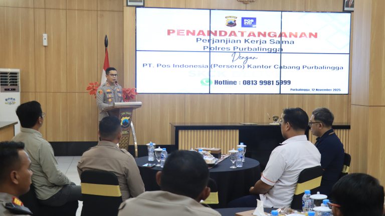 Divisinews.com//Purbalingga Jateng— Polres Purbalingga resmi menjalin kerja sama dengan PT Pos Indonesia untuk menghadirkan layanan SKCK Delivery. Penandatanganan perjanjian kerja sama ini berlangsung di Aula Wicaksana Laghawa, Mapolres Purbalingga, Rabu (12/11/2025).