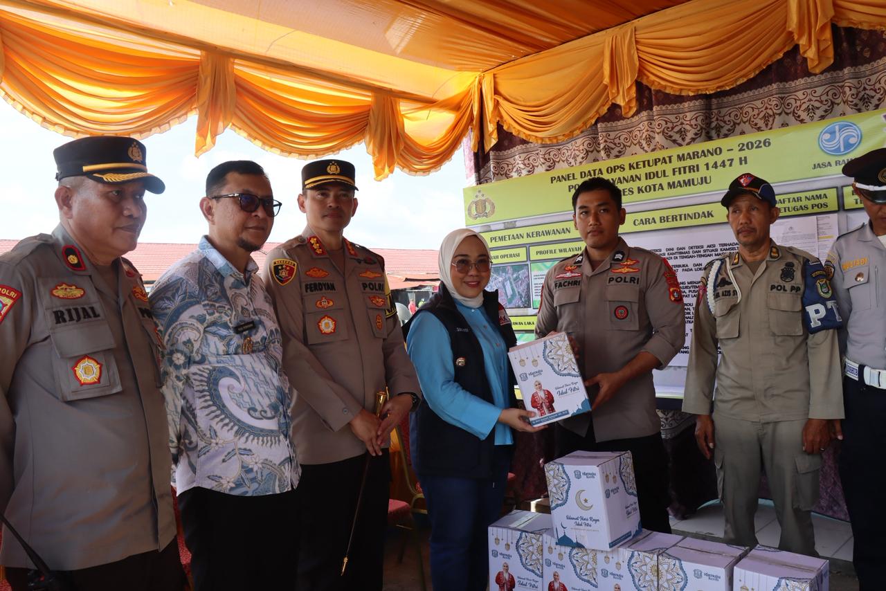 Bupati Mamuju Sutinah Suhardi menyampaikan terima kasih kepada seluruh personel yang terlibat dalam Operasi Ketupat Marano 2026, baik dari unsur Kepolisian, TNI, Satpol PP, Dinas Perhubungan, Dinas Kesehatan, maupun instansi terkait lainnya yang turut bersinergi menjaga situasi keamanan dan ketertiban tetap kondusif.