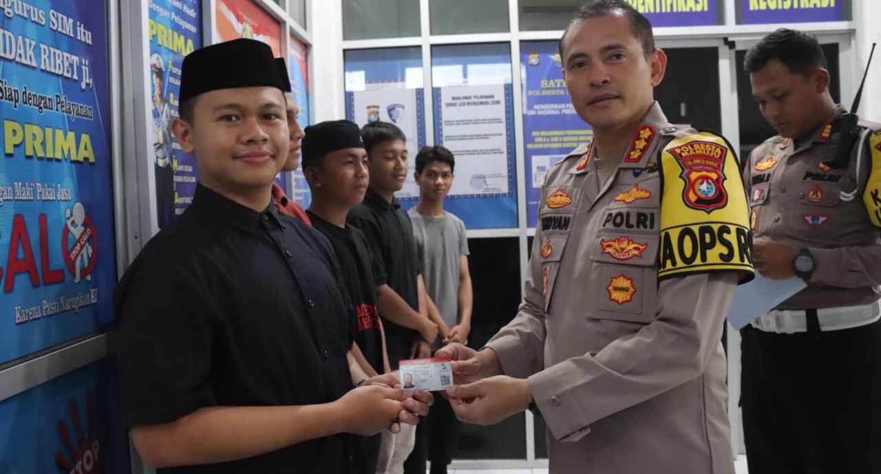 Dan perlu diketahui, bahwa dalam pembagian Sim gratis tersebut kepada 10 pelajar tetap di uji praktek berkendara. Tambahnya
