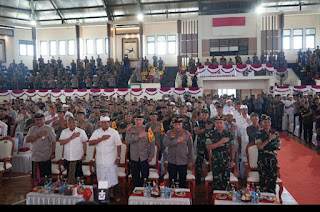 Acara doa bersama lintas agama bersama TNI-Polri dan masyarakat Bali ini digelar di GOR Yudomo, Praja Raksaka Kepaon, Denpasar, Bali, Selasa (19/11/2024). Hadir pula Panglima TNI Jenderal Agus Subiyanto.