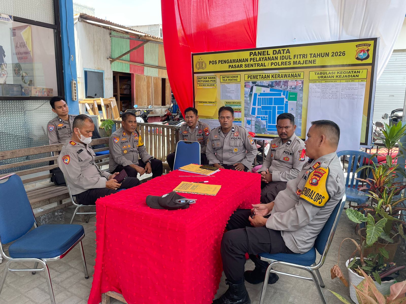 Majene – Dalam rangka memastikan kesiapan personel serta kelancaran pelaksanaan Operasi Ketupat 2026, Karendalops AKP Suparman bersama Kapusdal Ops AKP M. Tauhid, SE melakukan pemantauan di Pos Pengamanan (Pos Pam) Pasar Sentral Majene, Minggu (15/03/2026) sekitar pukul 11.35 WITA.