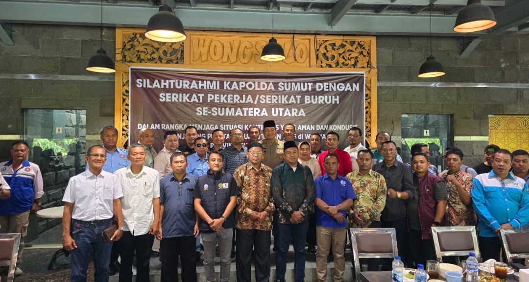 “Silaturahmi ini digagas untuk menjaga situasi Kamtibmas yang aman dan kondusif setelah penetapan UMP di Sumut. Setelah UMP Sumut ditetapkan menjadi 7,9 persen ini jadi momentum yang baik dalam menjaga situasi Kamtibmas di Sumut,”jelasnya.