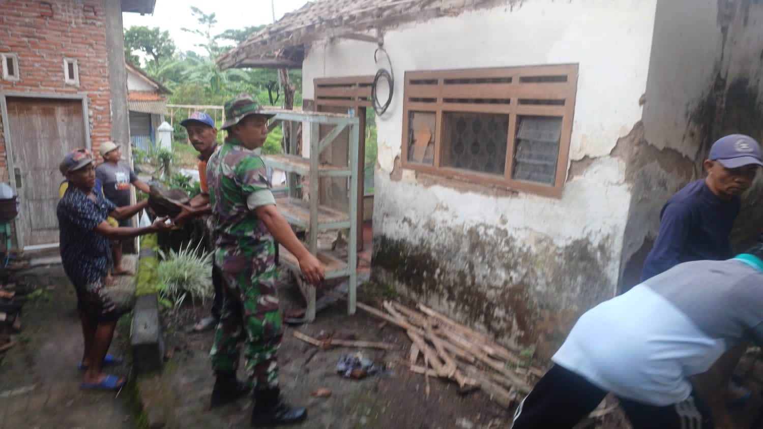 PASURUAN – divisinews – Pagi hari yang cerah dengan pakaian yang lengkap, Sertu Abdul Khalim Babinsa Koramil 0819/23 Sukorejo kembali menggelorakan semangat gotong royong bersama warga dalam pembongkaran rumah salah satu warga di Desa Pakukerto, Kecamatan Sukorejo, Kabupaten Pasuruan. (Kamis, 09/01/2025).