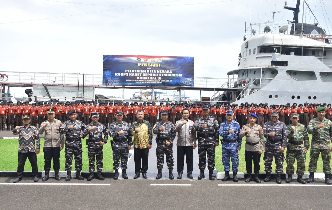 Divisinews.com//Makassar, Komandan Komando Daerah Angkatan Laut (Kodaeral) VI Laksamana Muda TNI Andi Abdul Aziz, S.H., M.M Memimpin Upacara Penutupan Persami dan Pelatihan Bela Negara Korps Kadet Republik Indonesia (KKRI) Gelombang III Tahun 2025 Bertempat di Dermaga Layang Mako Kodaeral VI Pada Hari, Minggu (16/11/2025).