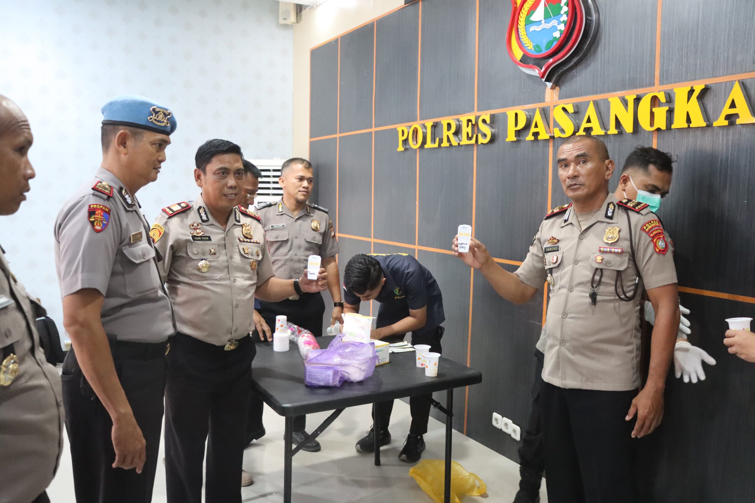 Pasangkayu – Sebagai wujud komitmen menjaga integritas dan profesionalisme institusi, Polres Pasangkayu melaksanakan pemeriksaan urine terhadap Pejabat Utama (PJU), Senin (02/03/2026) sekitar pukul 14.45 Wita. Kegiatan tersebut berlangsung di Aula Rupatama Polres Pasangkayu berdasarkan perintah Kepala Kepolisian Republik Indonesia melalui Surat Telegram Nomor STR/399/II/HUK.12.10/2026.