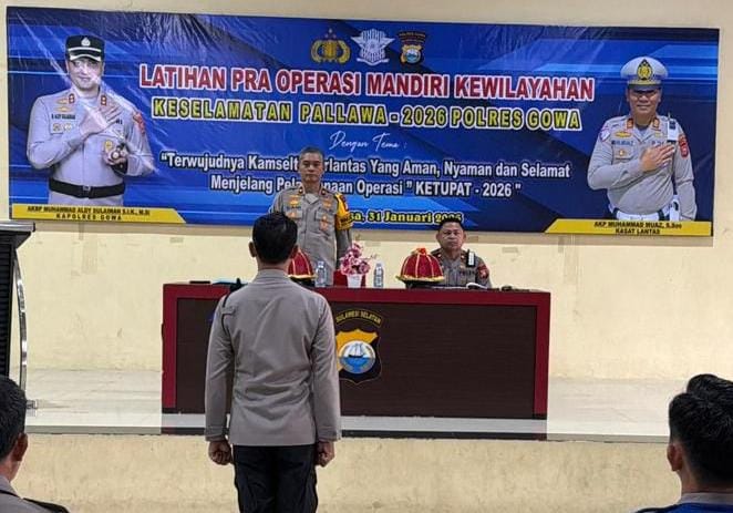 Divisinews.com//Gowa,- Polres Gowa menggelar Latihan Pra Operasi Mandiri Kewilayahan Keselamatan Pallawa-2026 yang berlangsung di Aula Rewako Wira Wicaksana Laghawa Polres Gowa, Senin (2/2/2026).