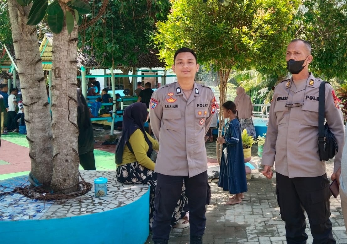 Guna memastikan situasi tetap aman dan kondusif, Bhabinkamtibmas Polsek Banggae Polres Majene, Brigpol Aco Muhammad Nur Alim, turun langsung melakukan pemantauan terhadap kepadatan pengunjung di lokasi wisata tersebut.