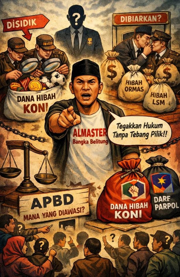 Pangkalpinang – Langkah serentak sejumlah Kejaksaan Negeri (Kejari) di Provinsi Kepulauan Bangka Belitung (Babel) yang mengintensifkan pemeriksaan dana hibah Komite Olahraga Nasional Indonesia (KONI) menuai kritik pedas. Lembaga Swadaya Masyarakat Aliansi Masyarakat Terzolimi (ALMASTER) Babel menilai penegakan hukum tersebut terkesan tebang pilih.