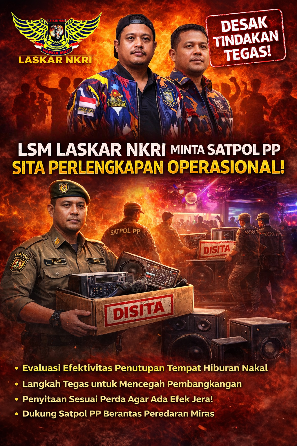 LSM Laskar NKRI Desak Satpol PP Tertibkan THM Membandel, Siap Kawal dan Dorong Penyitaan Perlengkapan Operasional