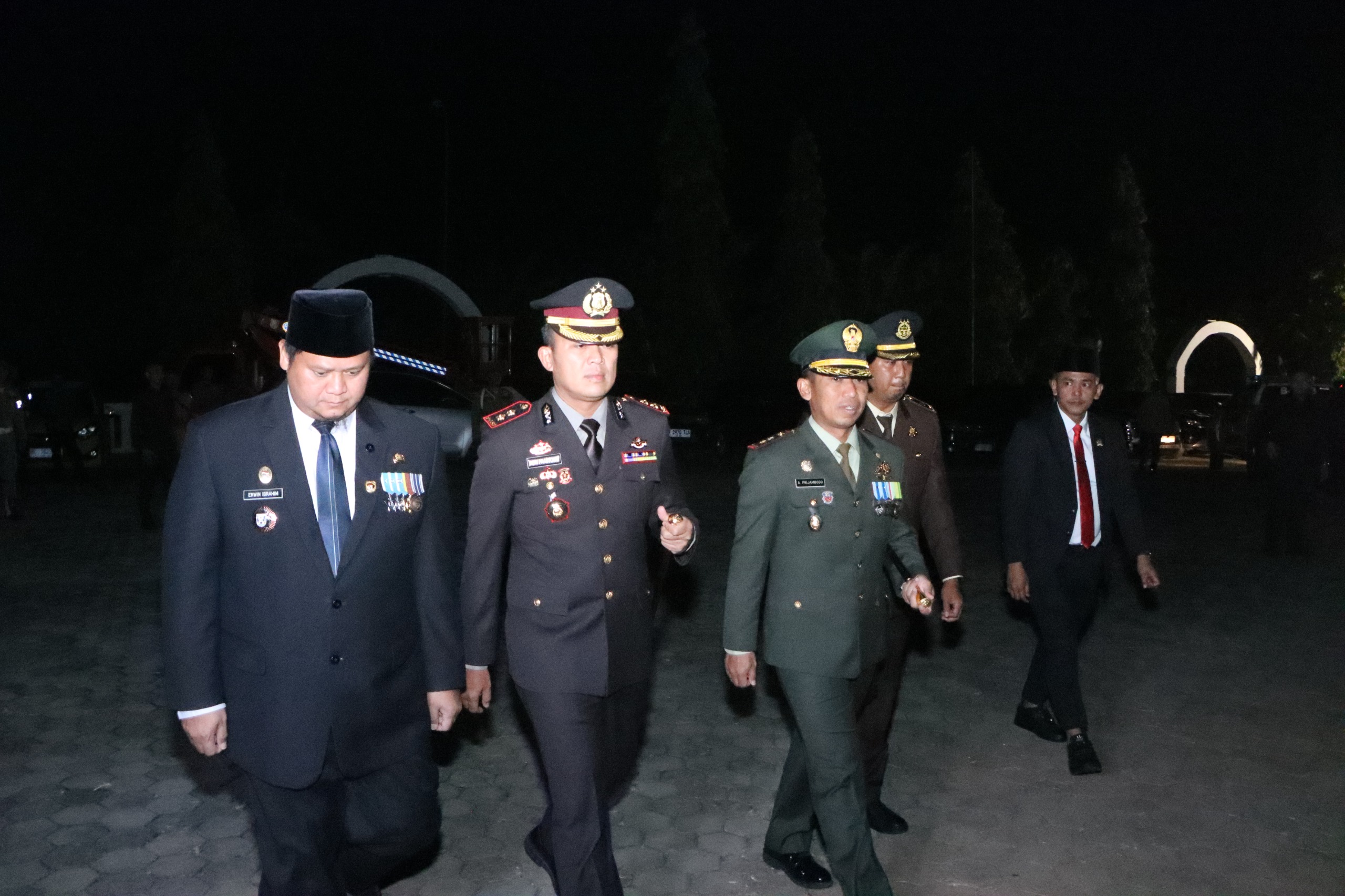 Upacara renungan suci malam itu ditutup dengan sesi tabur bunga di makam pahlawan oleh seluruh jajaran yang hadir, termasuk Bupati dan Kapolres