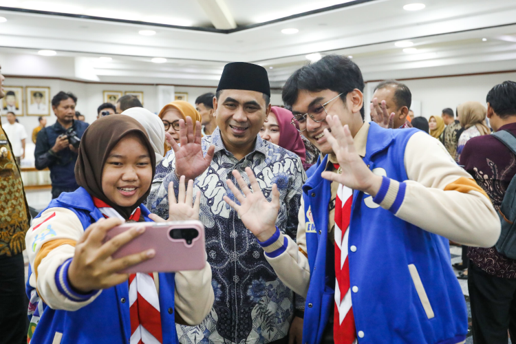 Menanggapi permintaan tersebut, Gubernur langsung mengambil ponsel milik warga dan berdiri di depan rombongan. Dengan santai, ia mengarahkan gaya dan mengatur posisi semua orang yang akan difoto.