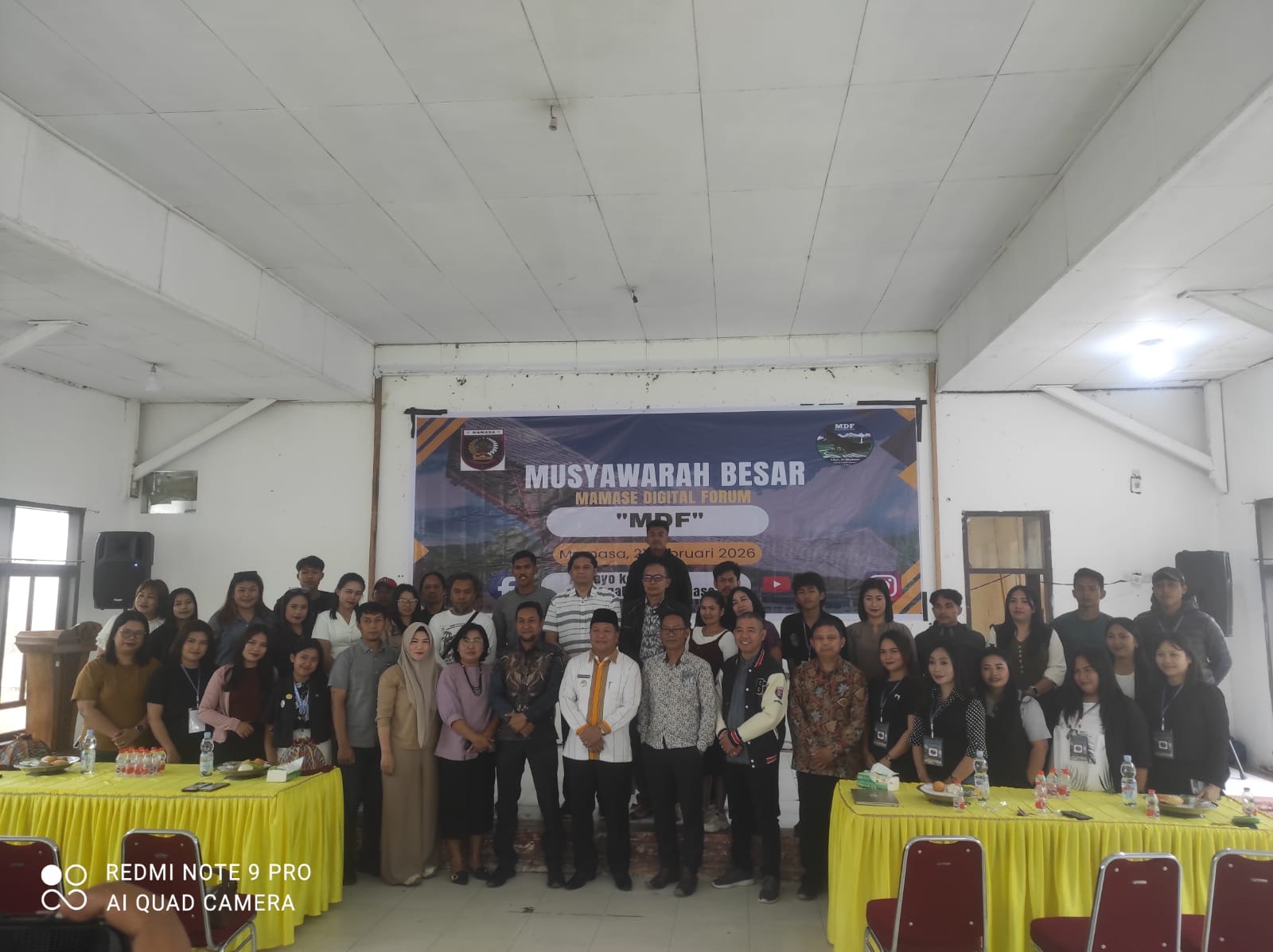 Mamasa–Musyawarah Besar (MUBES) Mamasa Digital Forum (MDF) resmi digelar pada Sabtu, pukul 09.00 WITA di Aula Mini Lingkungan Lembang Banggo, Kelurahan Mamasa, Kecamatan Mamasa, Kabupaten Mamasa. Kegiatan yang berlangsung hingga pukul 23.00 WITA tersebut berjalan aman dan kondusif serta diikuti sekitar 50 kreator digital dari berbagai platform media sosial, 21 Februari 2026