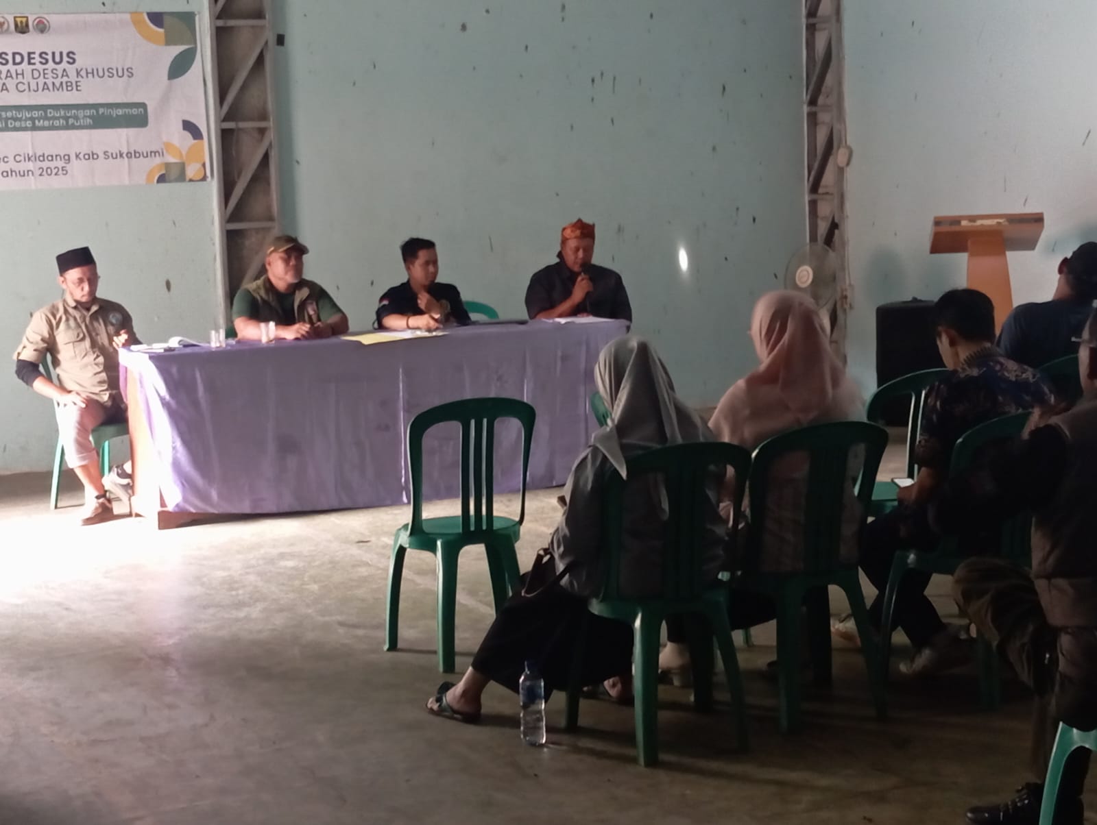 Sukabumi ,Divisinews.com – Pemerintah Desa Cijambe, Kecamatan Cikidang, Kabupaten Sukabumi, menggelar Musyawarah Desa Khusus (Musdesus) di aula desa setempat, dalam rangka persetujuan dukungan pinjaman untuk Koperasi Desa Merah Putih, Selasa ( 21/10/2025).