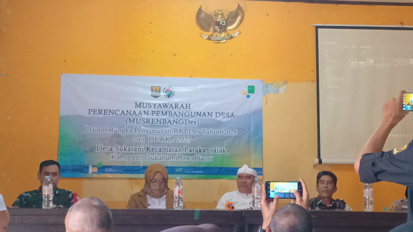 Sukabumi, Divisinews.com – Pemerintah Desa Sukatani Kecamatan Parakansalak, kabupaten sukabumi. menggelar Musyawarah Perencanaan Pembangunan Desa (Musrenbangdes) dalam rangka penyusunan RKPDDes Tahun 2026 dan DURKP 2027. Acara berlangsung di aula desa dengan dihadiri berbagai unsur pemerintahan dan tokoh masyarakat.pada rabu (26/11/2025).