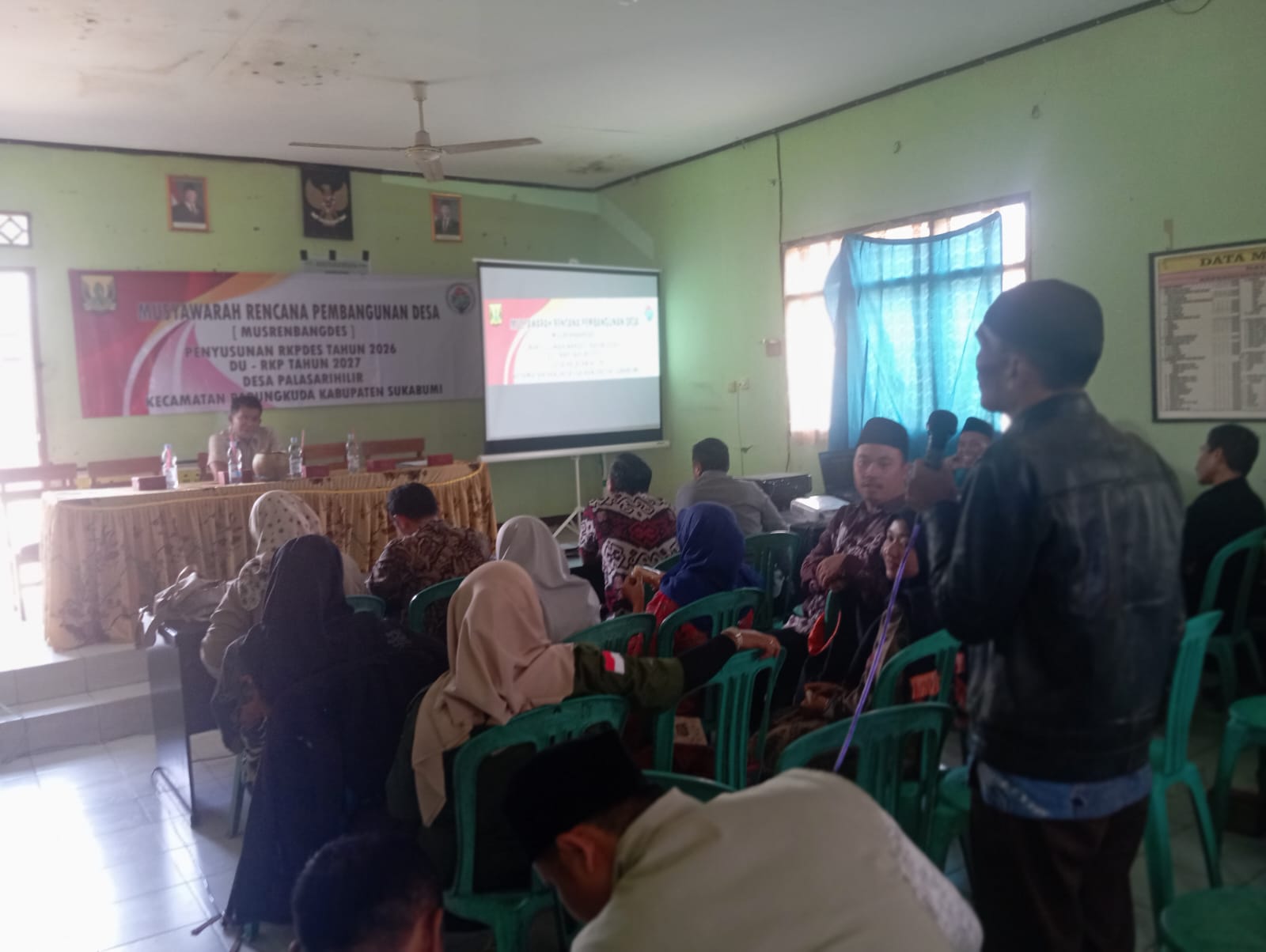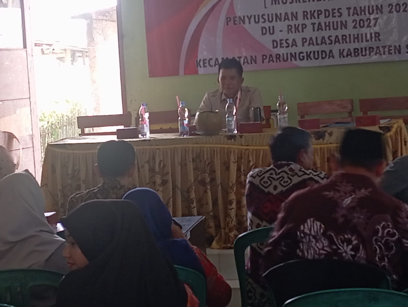 Sukabumi, Divisinews.com – Desa Palasari Hilir, Kecamatan Parungkuda, Kabupaten Sukabumi menggelar Musyawarah Rencana Pembangunan Desa (Musrenbangdes) untuk penyusunan RKPDes Tahun 2026 dan DU-RKP Tahun 2027 yang dilaksanakan di aula desa. Acara berlangsung hangat dan penuh partisipasi, dengan hadirnya anggota DPRD Kabupaten Sukabumi, H. Tedi Setiadi dari Fraksi partai Gerindra.pada kamis (11/12/2025).