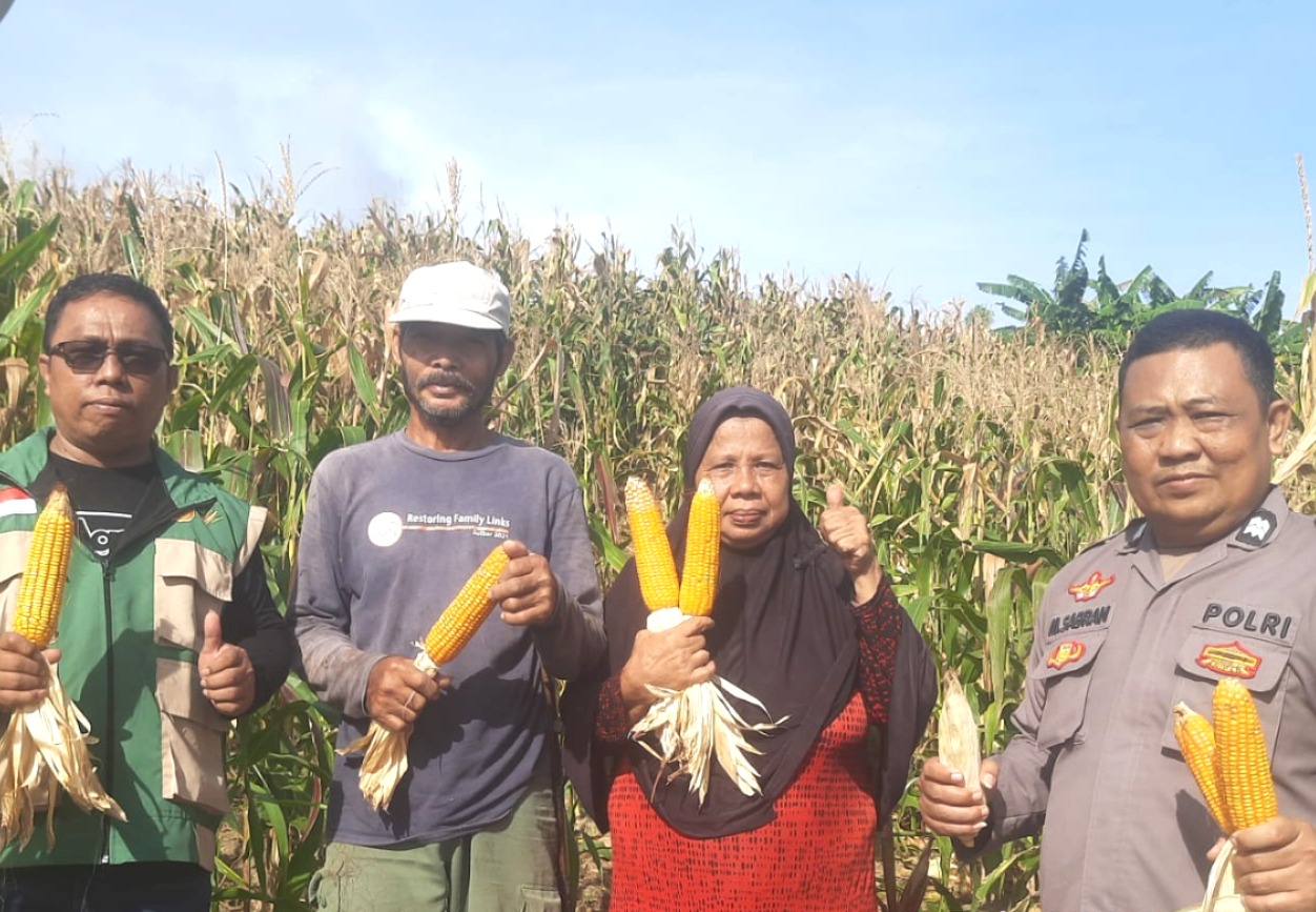 Panen Jagung 2 Ton, Wujud Nyata Bhabinkamtibmas Polsek Pamboang Polres Majene Sukseskan Ketahanan Pangan Nasional