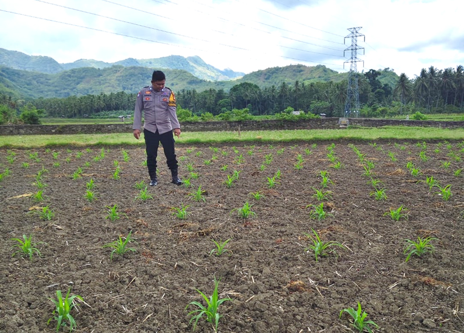 Pemantauan dilakukan pada lahan jagung yang baru saja selesai ditanami oleh warga setempat. Kehadiran Bhabinkamtibmas di tengah para petani tidak hanya sebagai bentuk pengawasan, tetapi juga sebagai wujud dukungan moril agar masyarakat semakin semangat dalam mengelola lahan pertanian mereka.