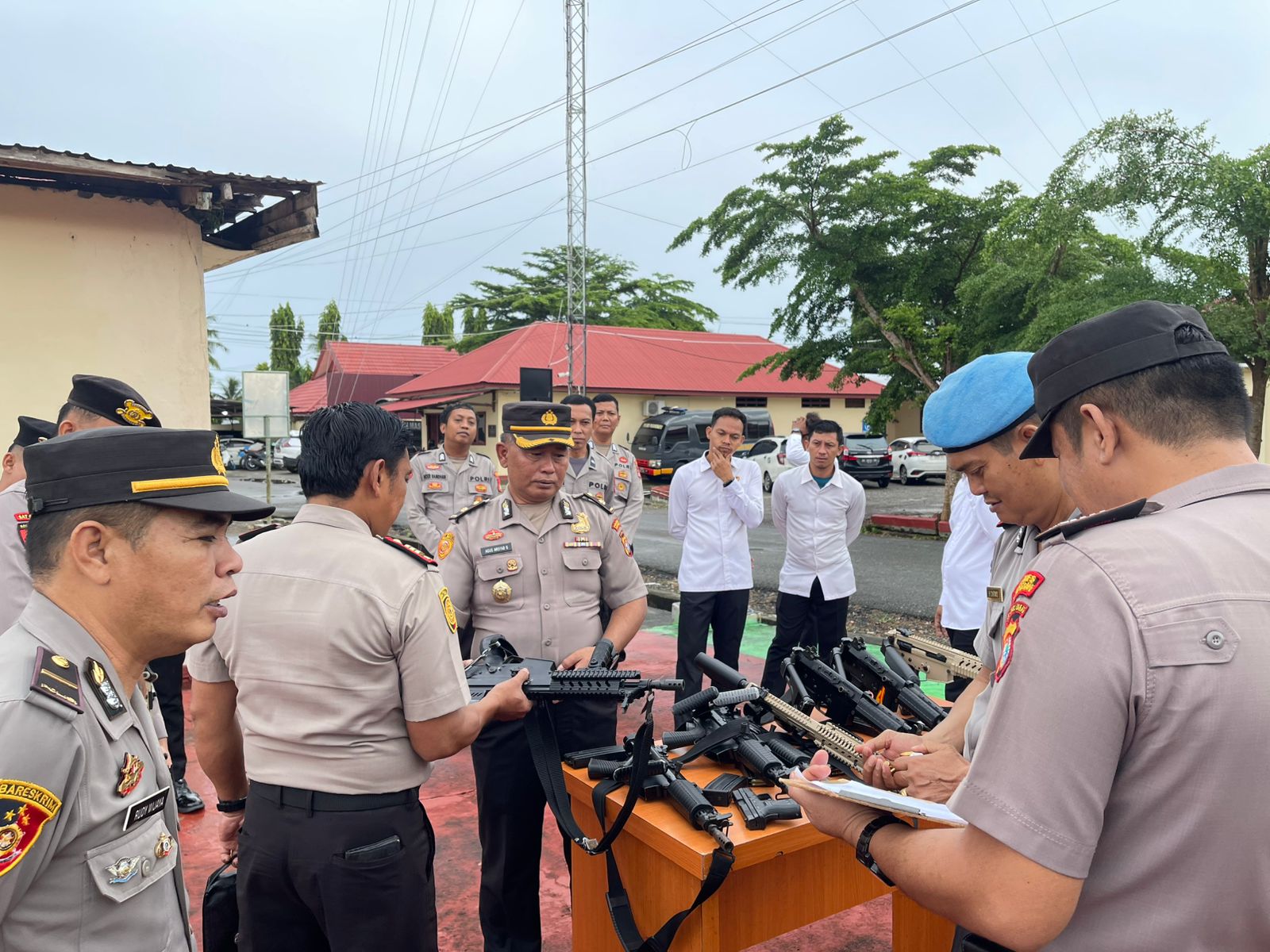 Dalam pemeriksaan tersebut, sejumlah senjata api inventaris baik laras pendek maupun laras panjang yang digunakan oleh personel dalam pelaksanaan tugas dilakukan pengecekan secara menyeluruh. Pemeriksaan ini bertujuan untuk memastikan kondisi senjata tetap dalam keadaan baik, administrasi lengkap, serta penggunaannya sesuai dengan standar operasional prosedur (SOP) kepolisian.