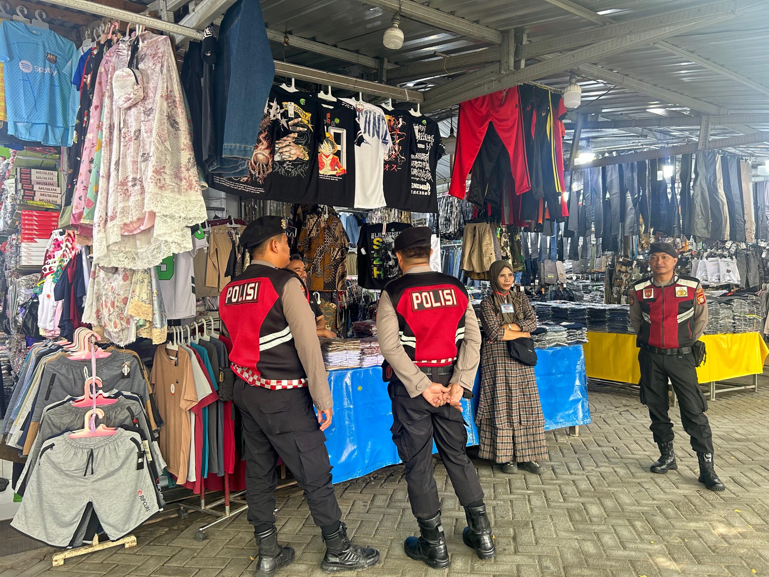 Personel Unit I Perintis Presisi Samapta tidak hanya melakukan pemantauan situasi keamanan, tetapi juga menyambangi para pedagang dan berdialog secara langsung.