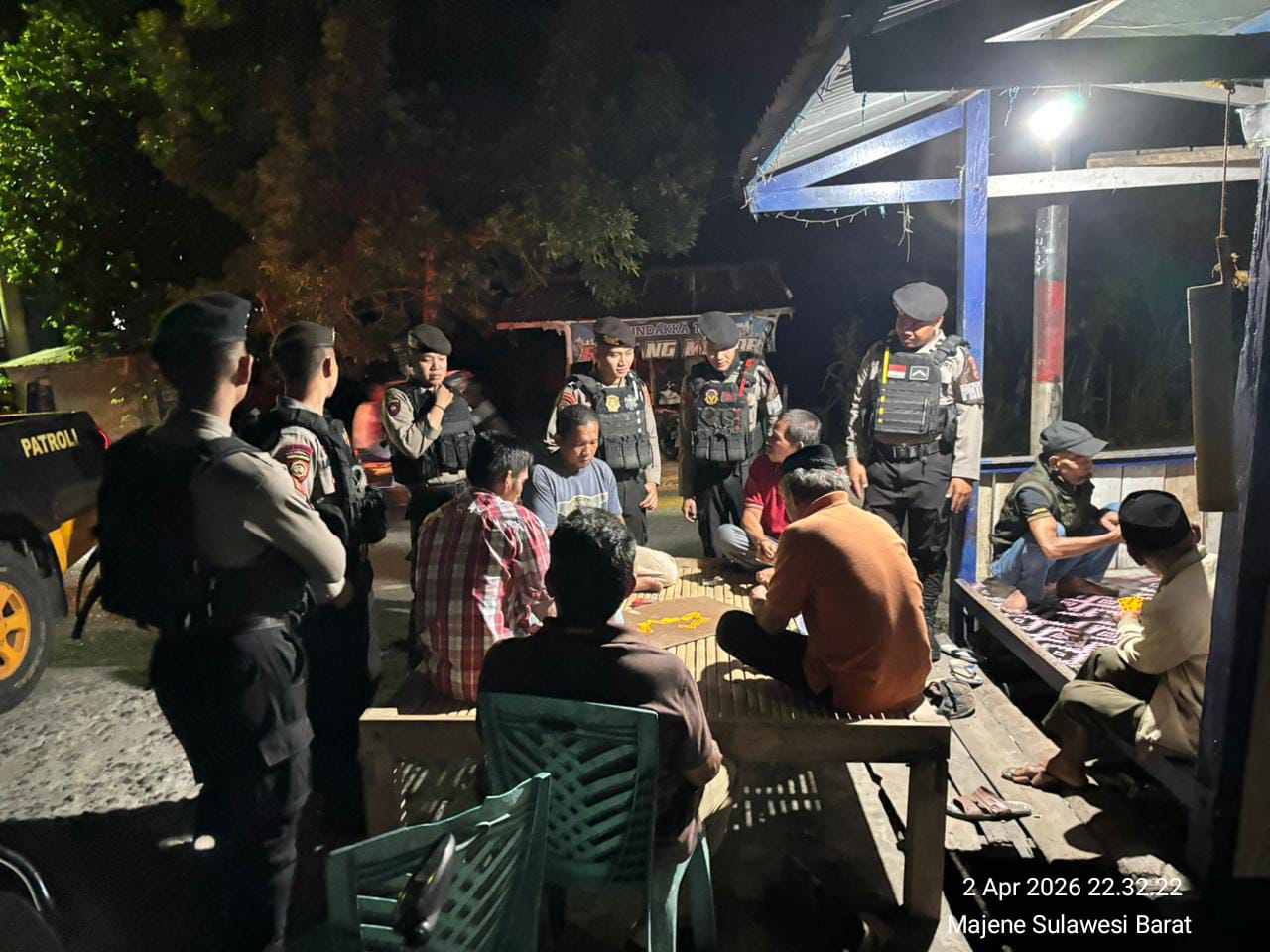 Patroli Samapta Polres Majene Sambangi Pos Kamling, Jaga Kondusifitas Malam Hari