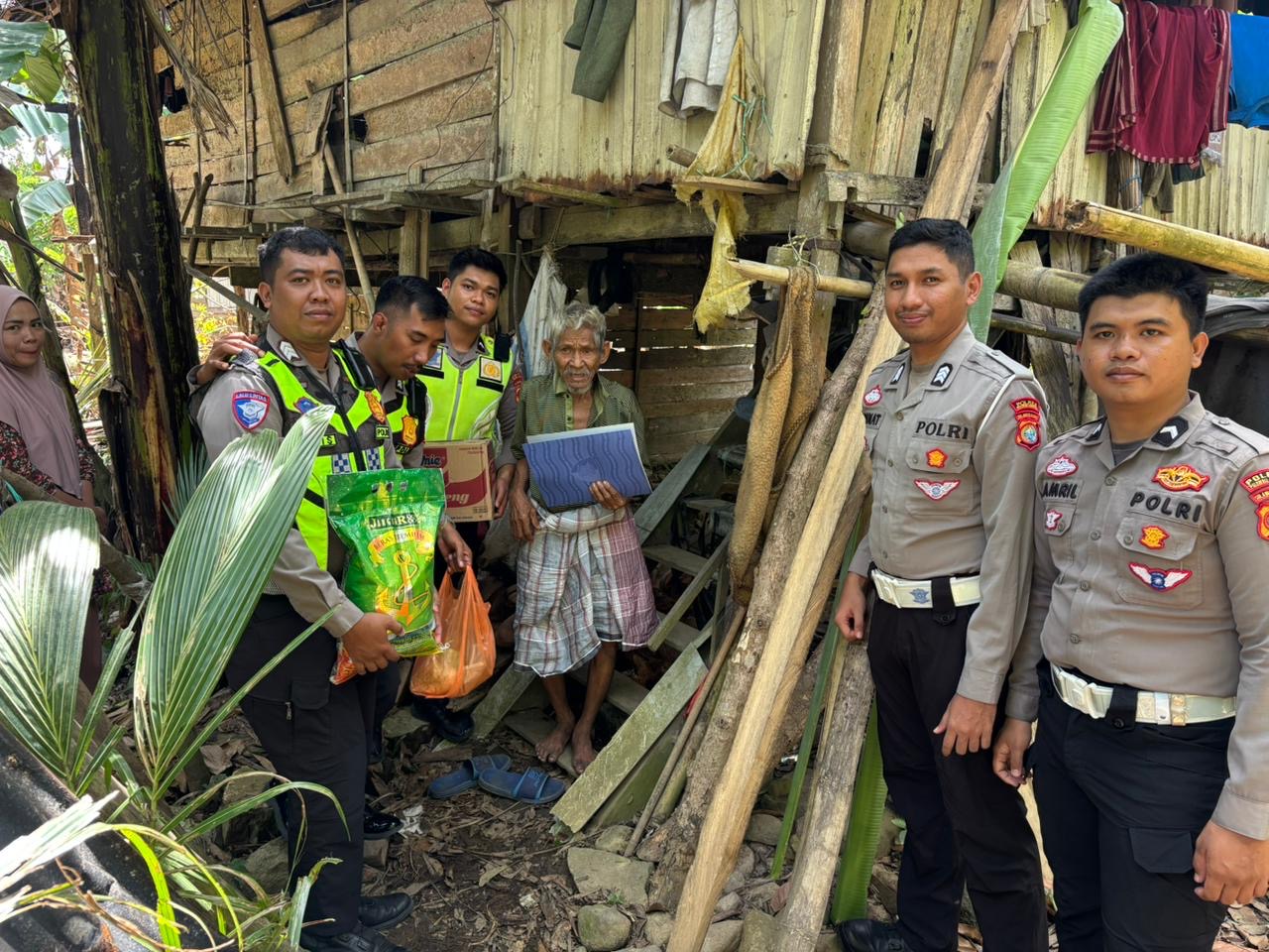 Kakek Rasil yang sudah berusia lanjut tampak sangat terharu menyambut kedatangan personel polisi yang datang dengan penuh kasih sayang dan memberikan sejumlah bantuan.
