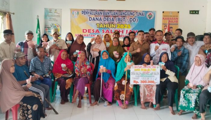 Divisinews.com // Banyuasin – Pemerintah Desa Saleh Jaya Kecamatan Air Salek Kabupaten Banyuasin Sumatera Selatan melakukan penyaluran Bantuan Langsung Tunai Dana Desa (BLT DD) tahap IV Bulan Oktober, Nopember dan Desember tahun 2025 sebanyak 25 KPM. Kamis (10/10/2025)