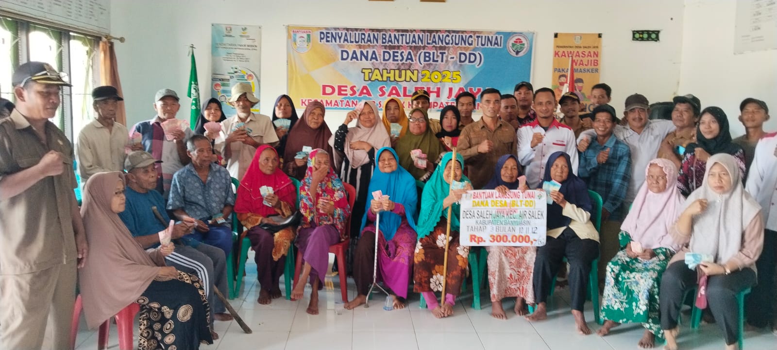 Kegiatan ini dilaksakan Kantor Desa Salah jaya dihadiri , kepala desa beserta staf, kepala dusun, RT, tokoh agama, dan peserta penerima manfaat, acara dimulai pukul 09.00 wib hingga selesai pukul 11.00 wib. BLT DD tahap IV telah disalurkan oleh Pemerintah Desa Saleh jaya kepada Keluarga Penerima Manfaat, masing – masing menerima bantuan sebesar Rp 300.000,- setiap bulannya dengan jumlah Rp 900.000,-