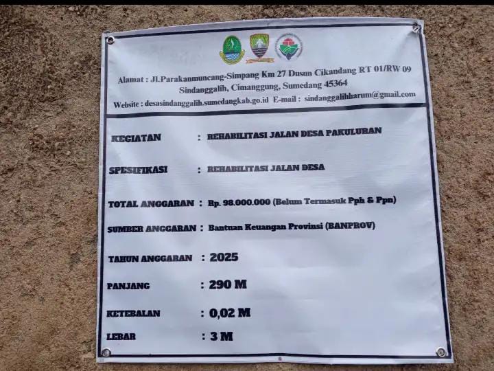 Divisinews.com//Sumedang -Pemerintah Desa Sindanggalih kecamatan cimanggung sumedang jawa barat telah merealisasikan anggaran Bantuan Provinsi (Banprop) untuk pengerasan jalan di Dusun Pakuluran RW 02. Jalan yang dikerjakan sepanjang 290 meter lebar 3meter dan ketinggian 0,2cm ini diharapkan dapat meningkatkan aksesibilitas dan kualitas hidup masyarakat setempat.jumat 21/11/2025.