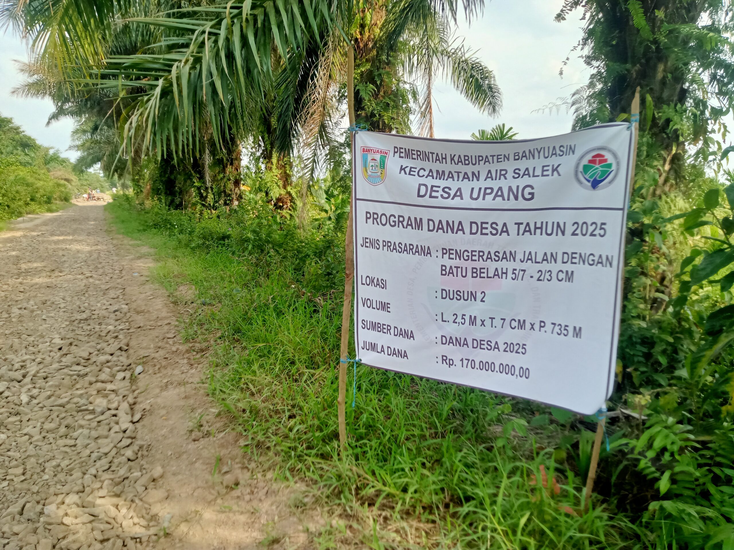 pengerasan badan jalan ini dengan Lebar 2,5 M. X Tinggi 7 Cm dan Panjang 735 M lokasi didusun 2 Jumlah dana Rp 170.000.000. program dana desa tahap 2 tahun 2025. Guna menstabilkan jalan kami berharap benar-benar mantap.