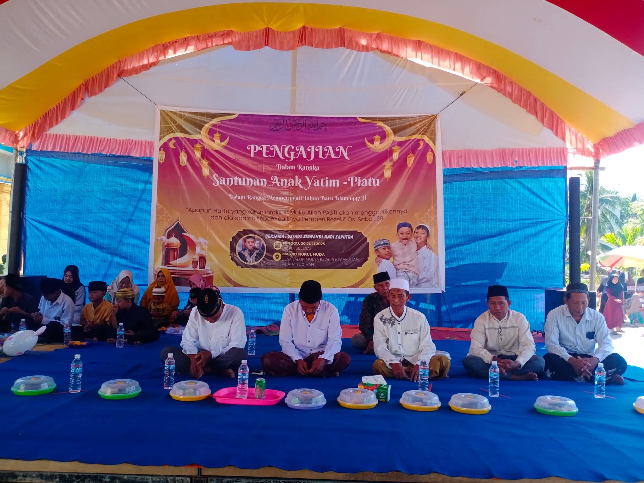Divisinews com // Banyasin – Pengajian dalam rangka santunan anak-anak yatim piatu tahun baru Islam 1447 H. Yang di selenggarakan di halaman masjid Nurul Huda Desa Jalur Mulya Blok B.