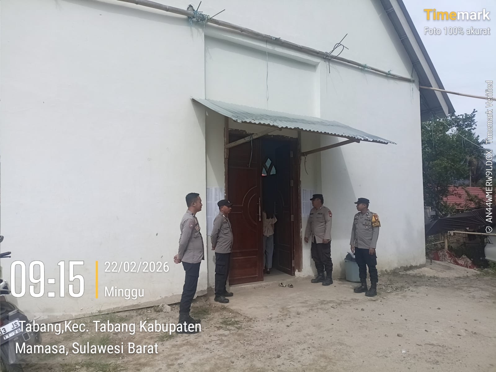 Mamasa–Aparat Polsek Pana melaksanakan kegiatan pengamanan ibadah Minggu di Gereja Toraja Mamasa Jemaat Sion Ladi, yang berlokasi di Lingkungan Ladi, Kelurahan Tabang, Kecamatan Tabang, Kabupaten Mamasa, pada Minggu, 22 Februari 2026