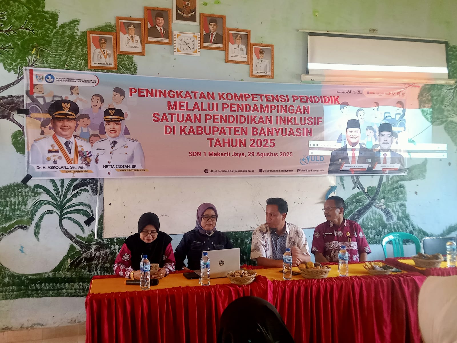 Divisinews.com // Banyuasin – Peningkatan Kompetensi Pendidik Melalui Pendampingan Satuan Pendidikan Enkusif di Kabupaten Banyuasin tahun 2025, melalui Dinas Pendidikan dan Kebudayaan terus mendorong mutu pendidikan, dan pendampingan satuan pendidikan inklusif kegiatan berlangsung di SD Negeri 1 Kecamatan Makarti Jaya. Jum’at 29 Agustus 2025