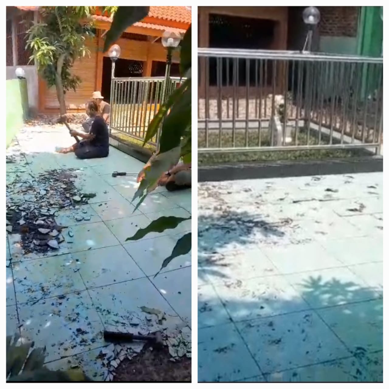 Warjani, salah satu jamaah yang bertindak sebagai promotor kegiatan, terlihat aktif mengkoordinir jalannya proses renovasi.