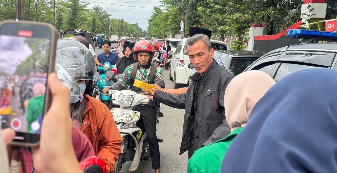 Ratusan paket takjil dibagikan kepada para pengendara, pejalan kaki, dan masyarakat yang melintas menjelang waktu berbuka puasa. Kehadiran aparat kepolisian bersama mahasiswa dan OKP ini disambut antusias oleh warga.