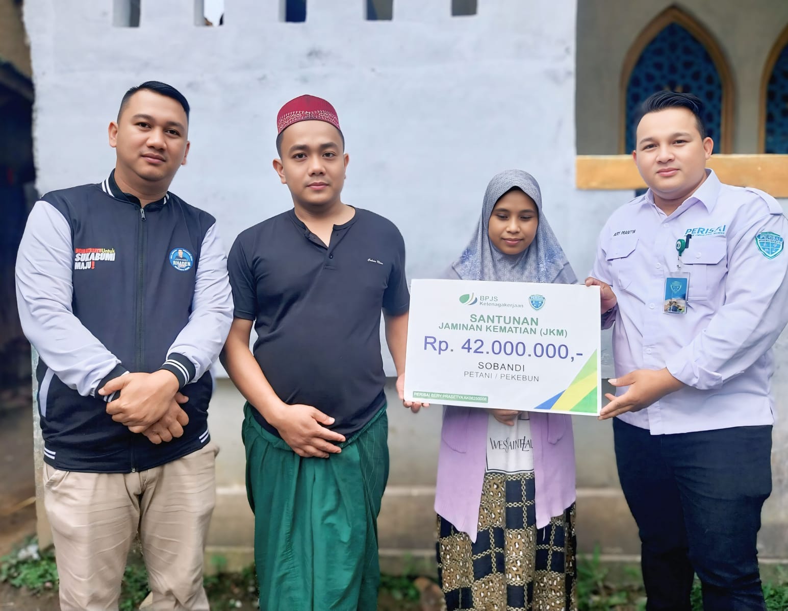 Sukabumi, divisinews.com – Perisai BPJS Ketenagakerjaan Bery Prasetya A.Md.Kom melaksanakan penyerahan manfaat secara simbolis kepada ahli waris almarhum Bapak SOBANDI , peserta BPJS Ketenagakerjaan. Manfaat yang diserahkan merupakan bagian dari Program Jaminan Kecelakaan Kerja (JKK) dan Jaminan Kematian (JKM).