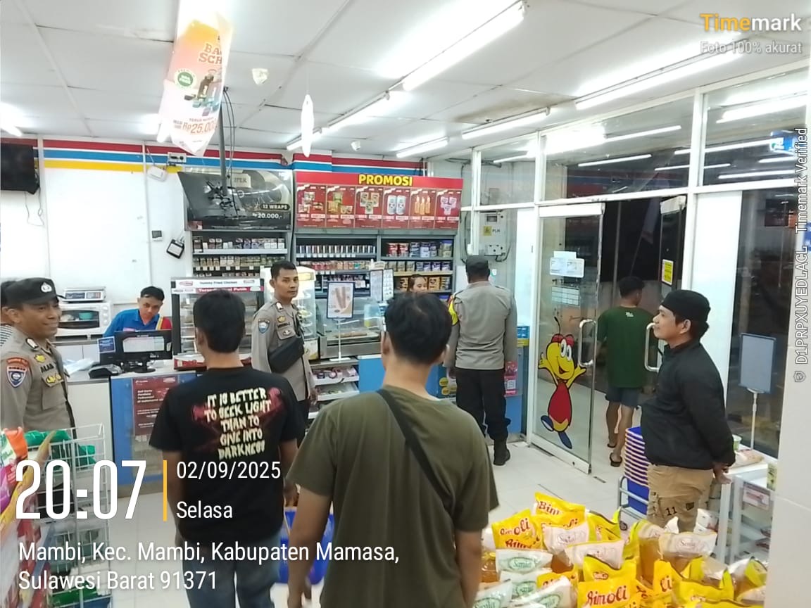 Patroli dilakukan dengan menyasar sejumlah lokasi strategis, di antaranya Kantor Bank BRI Unit Mambi dan Indomaret Mambi. Fokus kegiatan tersebut adalah memantau situasi keamanan dan ketertiban masyarakat (kamtibmas), khususnya pada objek vital, sekaligus memberikan imbauan kepada warga agar tetap menjaga keamanan di lingkungannya.