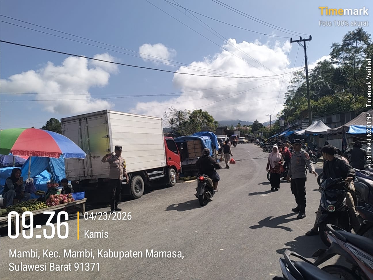 MAMASA–Dalam rangka menjaga keamanan dan ketertiban masyarakat, personel Polsek Mambi melaksanakan kegiatan pengamanan (PAM) sekaligus pengaturan arus lalu lintas di kawasan Pasar Mambi, Kecamatan Mambi, Kabupaten Mamasa, Kamis sekitar pukul 09.00 WITA, 23 April 2026