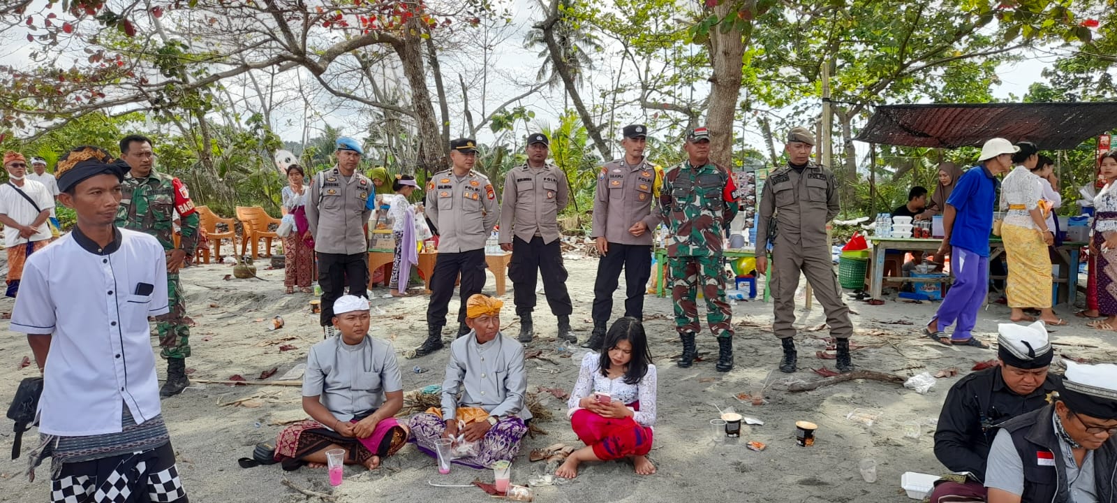 Personel Pos Pam Baras Amankan Ibadah Melasti Umat Hindu di Pantai Salukaili Narasi Berita
