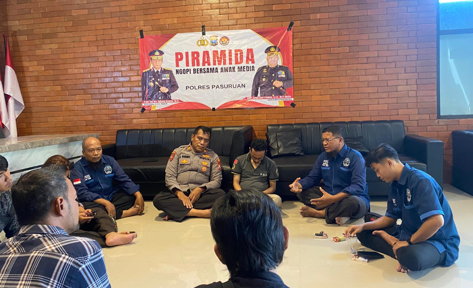 Acara berlangsung dalam suasana santai namun substantif. Di balai wartawan polres pasuruan.