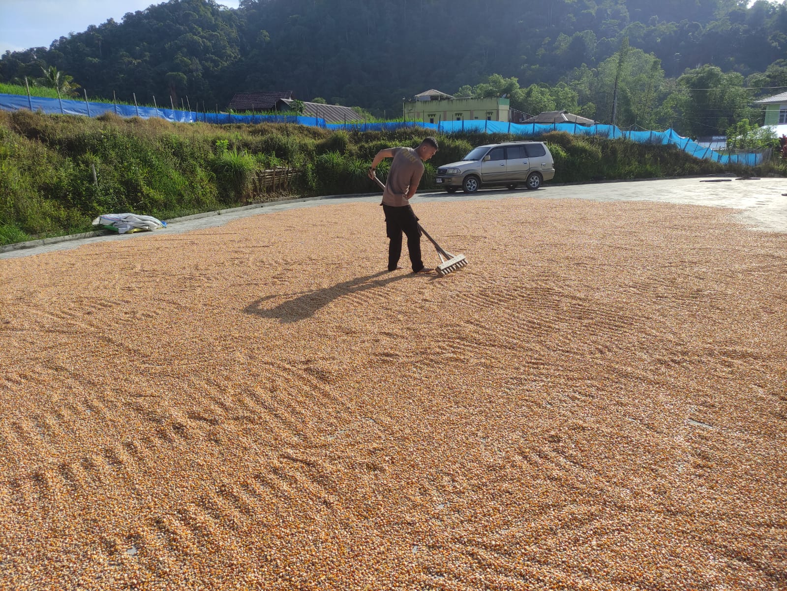 Penjemuran ini merupakan bagian penting dalam menjaga kualitas hasil panen sebelum dipasarkan.