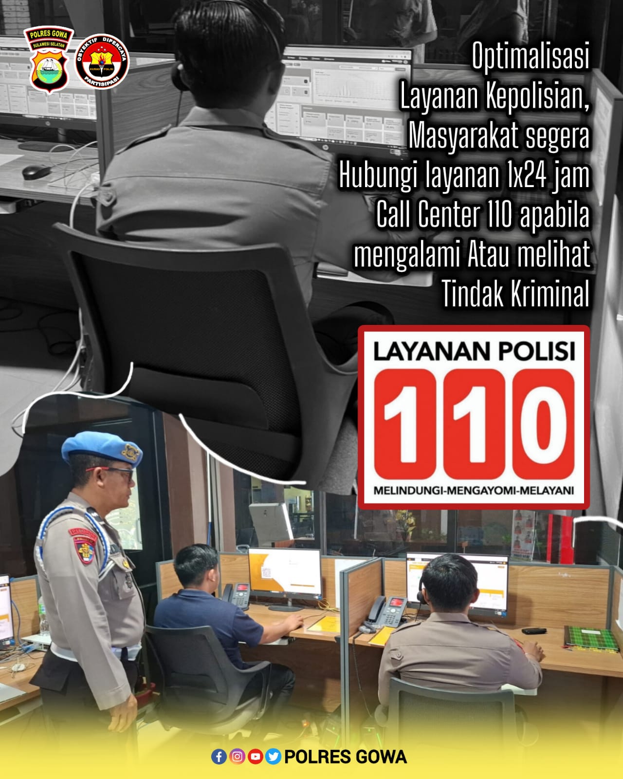 Divisinews.com//Gowa,- Dalam upaya meningkatkan pelayanan kepada masyarakat serta menjaga situasi keamanan dan ketertiban tetap kondusif, Polres Gowa terus mengoptimalkan layanan kepolisian melalui Call Center 110 yang siap melayani masyarakat selama 1×24 jam, Jum’at (3/4/2026).