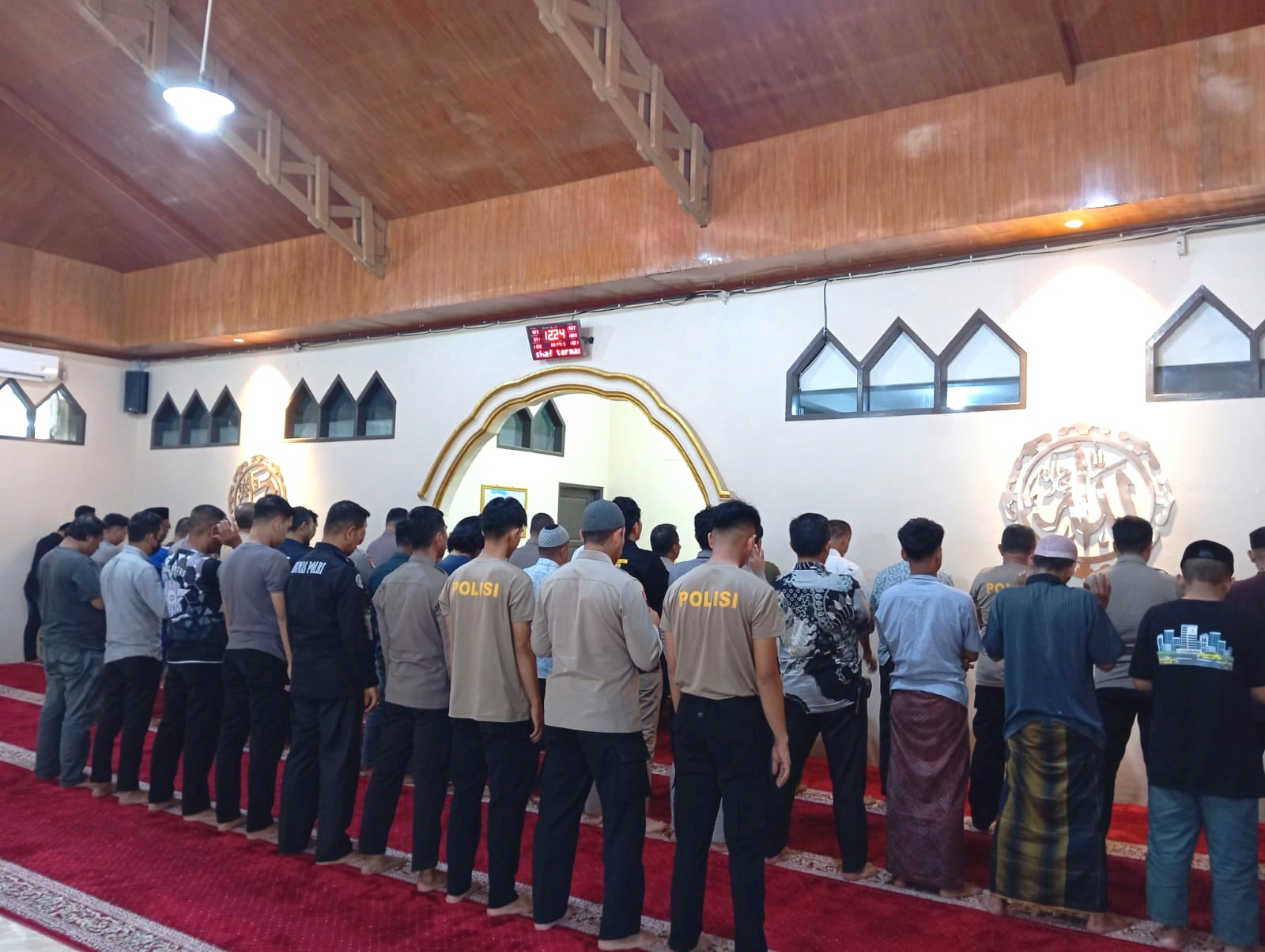 Sholat Gaib dipimpin oleh Imam Masjid Nurul Ikhlas Polres Majene, Ustadz H. Abu Khaer, S.Ag, dan diikuti oleh Pejabat Utama (PJU) Polres Majene, seluruh personel, serta masyarakat sekitar.