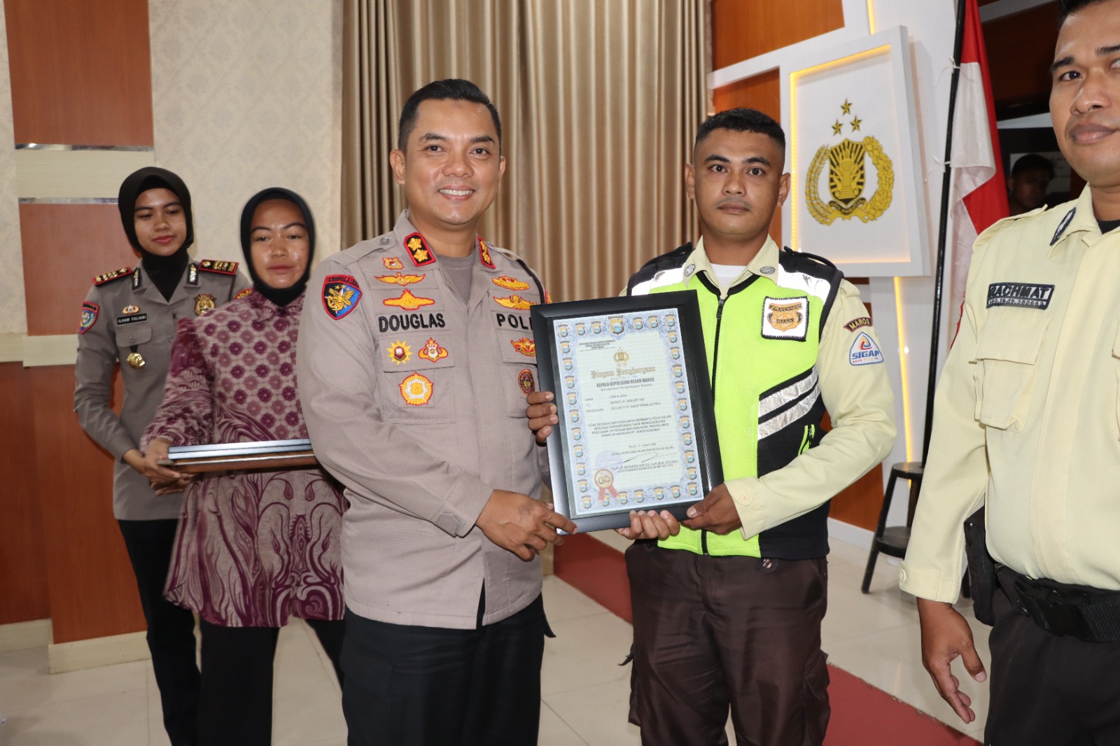Penyerahan piagam penghargaan diserahkan langsung oleh Kapolres Maros didampingi Wakapolres dan Kasat Binmas Polres Maros AKP Ilham Yuliani S.Trk., S.I.K.
