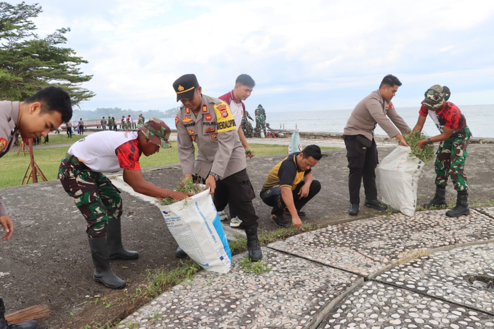 Pasangkayu – Dalam rangka menumbuhkan kepedulian terhadap kebersihan lingkungan serta mempererat sinergitas lintas sektor, Polres Pasangkayu bersama TNI, Forkopimda dan para siswa melaksanakan kegiatan gotong royong kerja bakti membersihkan Pantai Anjungan Pasangkayu, Jumat (6/2/2026) pagi pukul 07.00 WITA.
