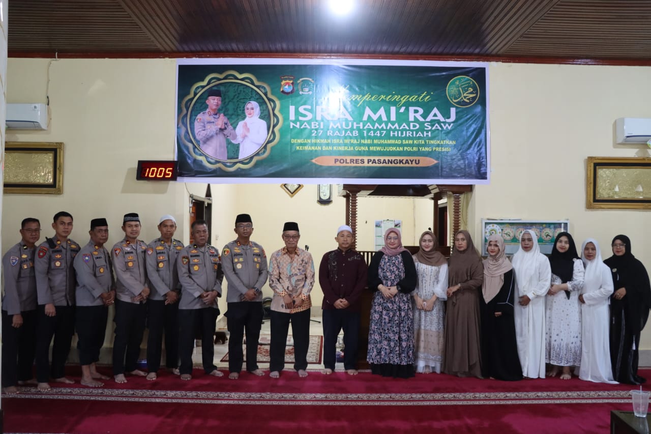 Pasangkayu – Polres Pasangkayu menggelar peringatan Isra Mi’raj Nabi Muhammad SAW Tahun 1447 Hijriah/2026 Masehi yang berlangsung khidmat, bertempat di Masjid Assyfa Polres Pasangkayu pada Kamis (15/01/2026) pagi.