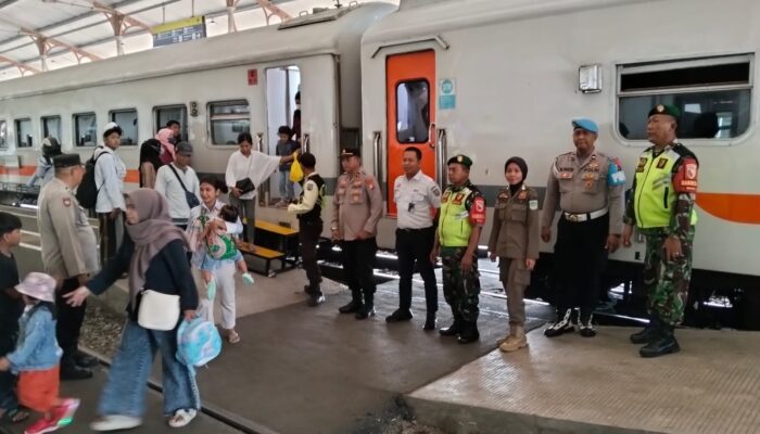 divisinews.com // PASURUAN — Polres Pasuruan melakukan pemantauan arus keberangkatan dan kedatangan kereta api di Stasiun KA Bangil selama libur Natal dan Tahun Baru (Nataru) 2025, Minggu (28/12/25).