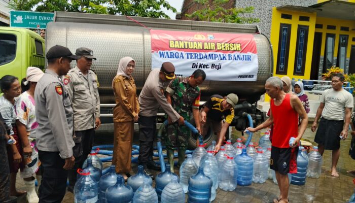 Polsek Beji Salurkan 9 Ribu Liter Air Bersih untuk Warga Terdampak Banjir di Kedungringin
