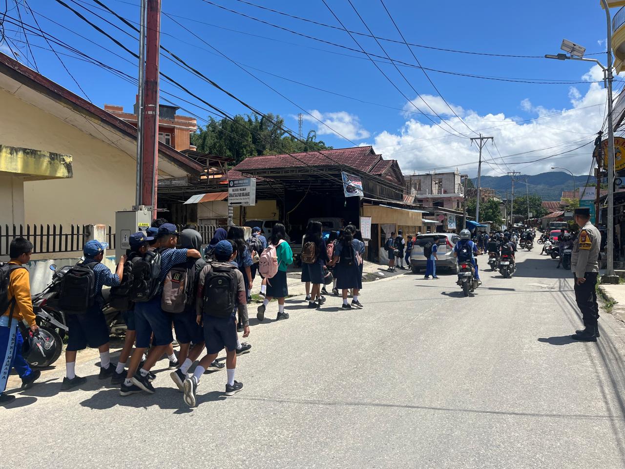 MAMASA–Guna mengantisipasi kepadatan arus kendaraan pada jam pulang sekolah, personel Polsek Mamasa melaksanakan kegiatan pengaturan lalu lintas (gatur lalin) di sejumlah titik rawan kemacetan di wilayah hukumnya, Rabu siang sekitar pukul 12.30 WITA, 29 April 2026