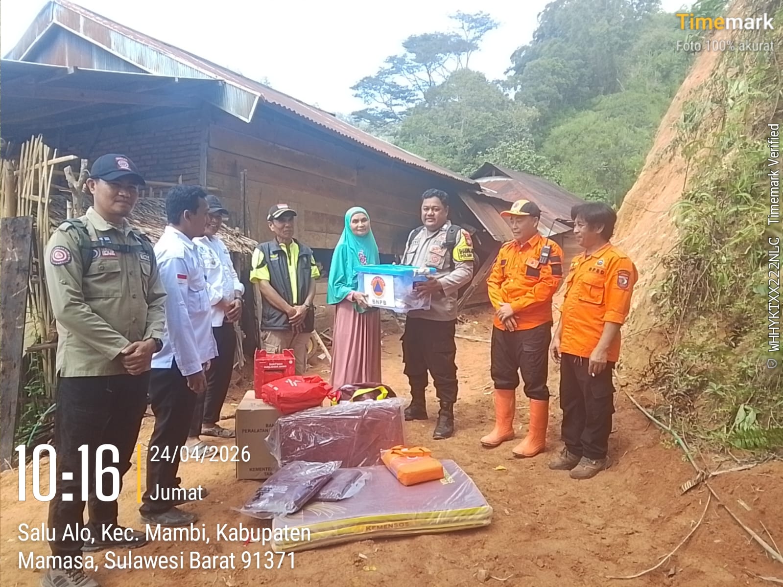 Dalam kegiatan ini, Bhabinkamtibmas Polsek Mambi menggelar Program SAKTI (Sambang Keluarga Tangguh Indonesia) yang dirangkaikan dengan penyaluran bantuan kepada warga terdampak bencana alam tanah longsor.