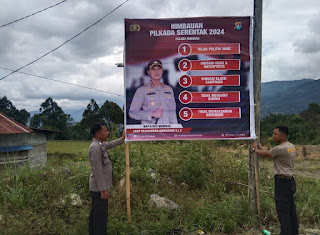 Divisinews.online, Mamasa – Personel Polsek Pana melaksanakan kegiatan pemasangan spanduk himbauan terkait Pilkada Serentak 2024 di Wilkum Polsek Pana, Minggu 8 September 2024.